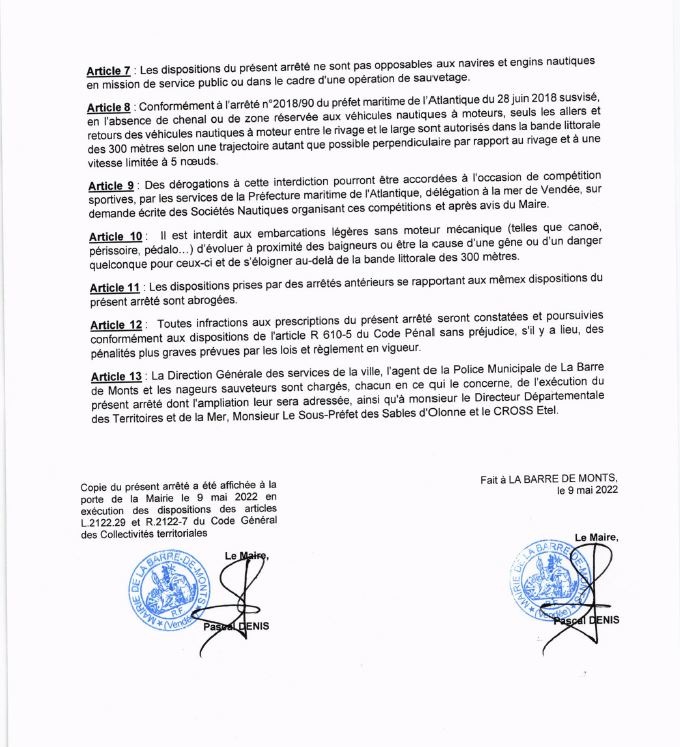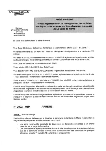 Arrêté La Barre de Monts